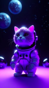 Пушистик родился на острове Лапуш, одном из самых уютных уголков Кораллии. Его родители — владельцы небольшого курорта, где коты со всей галактики приезжают отдохнуть. С детства он помогал на пляже: приносил кокосовое молоко туристам, играл с котятами, учился плавать и слушал истории путешественников. Особенно он любил слушать рассказы старого капитана Мяурика, завсегдатая пляжного бара, который однажды сказал: «Ты, Пушистик, однажды улетишь к звёздам. Я это вижу по твоим глазам».